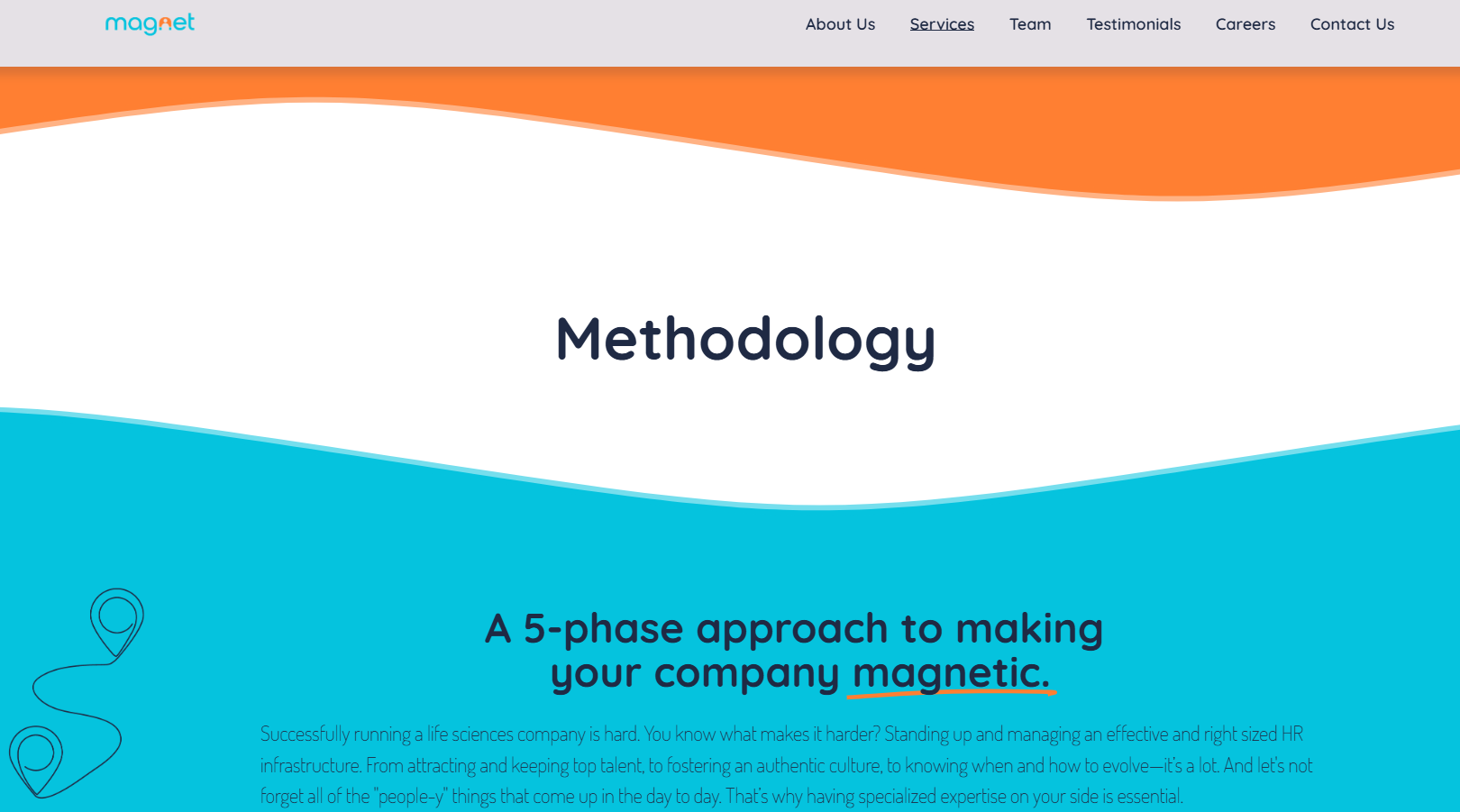 The whiteboard-inspired elements come to life digitally, guiding visitors through Magnet’s offerings. Every page works together to make Human Resources and Talent Acquisition feel tangible—and partnership with them feel effortless.